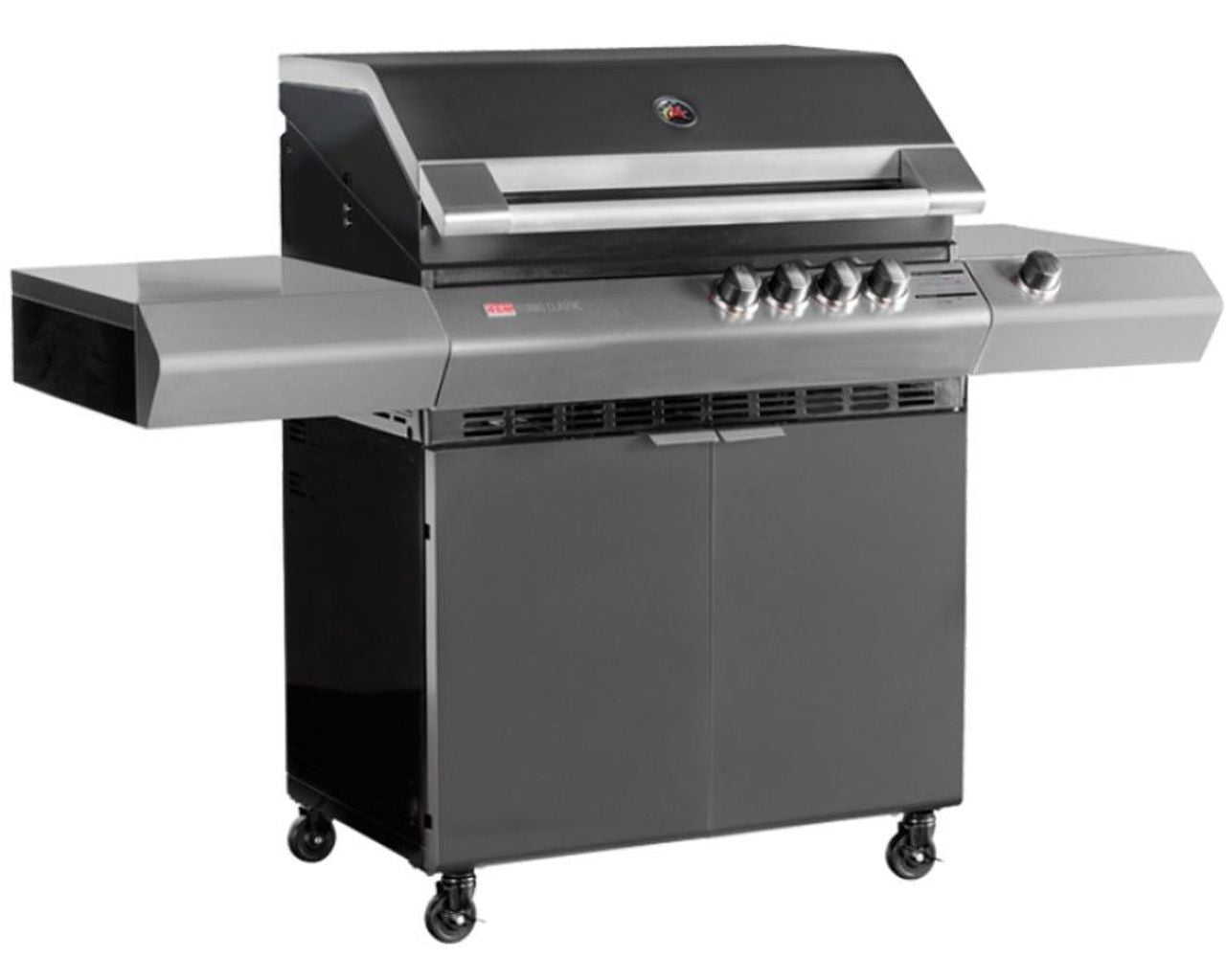 Take your outdoor entertaining up a notch with the Turbo Classic 4 burner barbeque on cart. Including a powerful side burner, create soups, quick stir-fries and creamy sauces alongside your barbeque dishes. This premium 4 burner BBQ is the ultimate cooking machine for BBQ beginners and professionals alike!