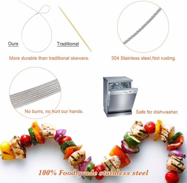 – Available in packs of two (2) and manufactured from stainless steel, each skewer measures 73 cm in length.  Simply wash and dry by hand after each use to keep your Flexible Skewers looking great.