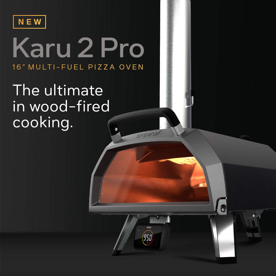 Level up your multi-fuel cooking with the latest and greatest oven in the Ooni Karu line. If you’re obsessed with making pizza, want to hone your culinary craft for a crowd, or just want the most advanced outdoor cooking technology, look no further than the Ooni Karu 2 Pro. This gorgeous, sleek oven has all the best qualities of the Ooni Karu 16, with extra space and the latest technology sprinkled on top. Learn how Karu 2 Pro will take your cooking to new heights, how to monitor oven temps right from your phone and more.