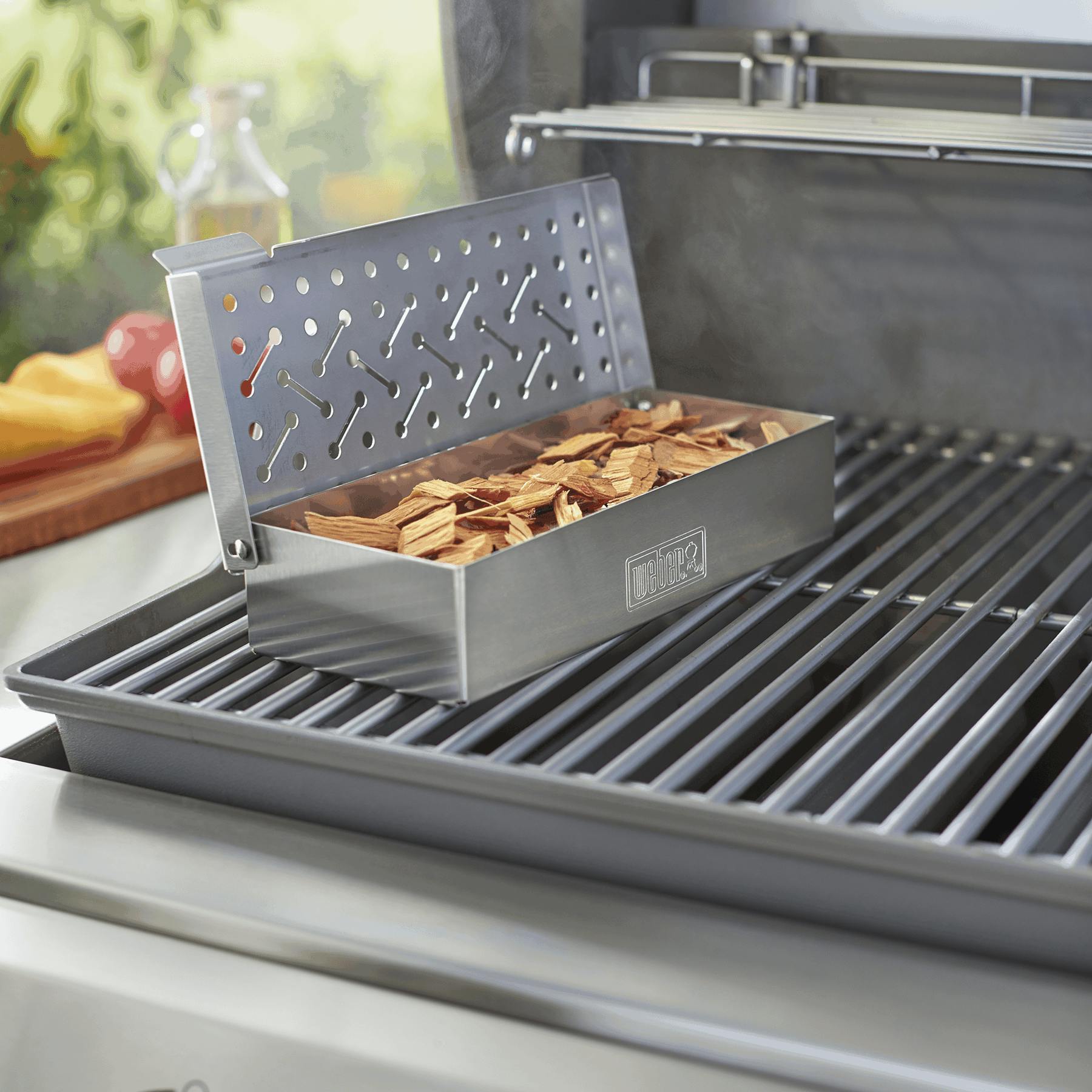 Add delicious smoke flavor to any grilled meal. Infuse your food with a hint of hickory, apple, oak, or cherry wood. Set the Smoker Box right on top of your cooking grates to transform any gas or charcoal grill into a smoke cooker to give your meats and veggies, the mouthwatering smoky flavor you crave.